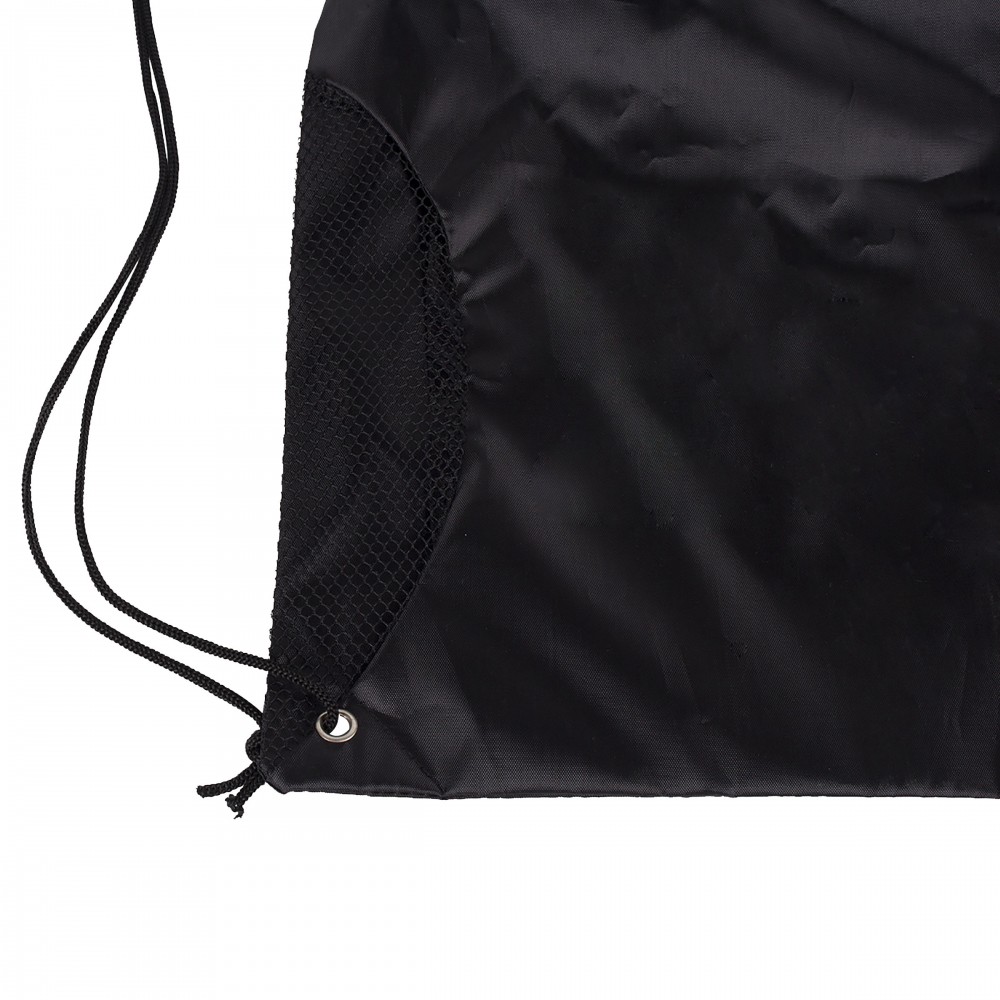 This mesh backpack bag is made of 210D polyester, with big front zipper pocket, and built in slot for ear buds. Spot clean and air dry. Perfect for sports, school and travelling.17"L x 14"W