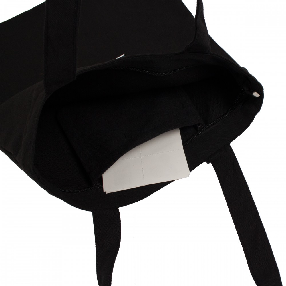 This natural cotton canvas zippered tote bag is perfect for environmentally friendly campaigns. With an approximate size of 15" W x 13.4" H, this canvas has 20" handles for easy carrying. You can take it with you to the beach, the mall, the supermarket and more. Customize this black bag with an imprint of your logo and carry your brand name further! 15" h x13.4" w
