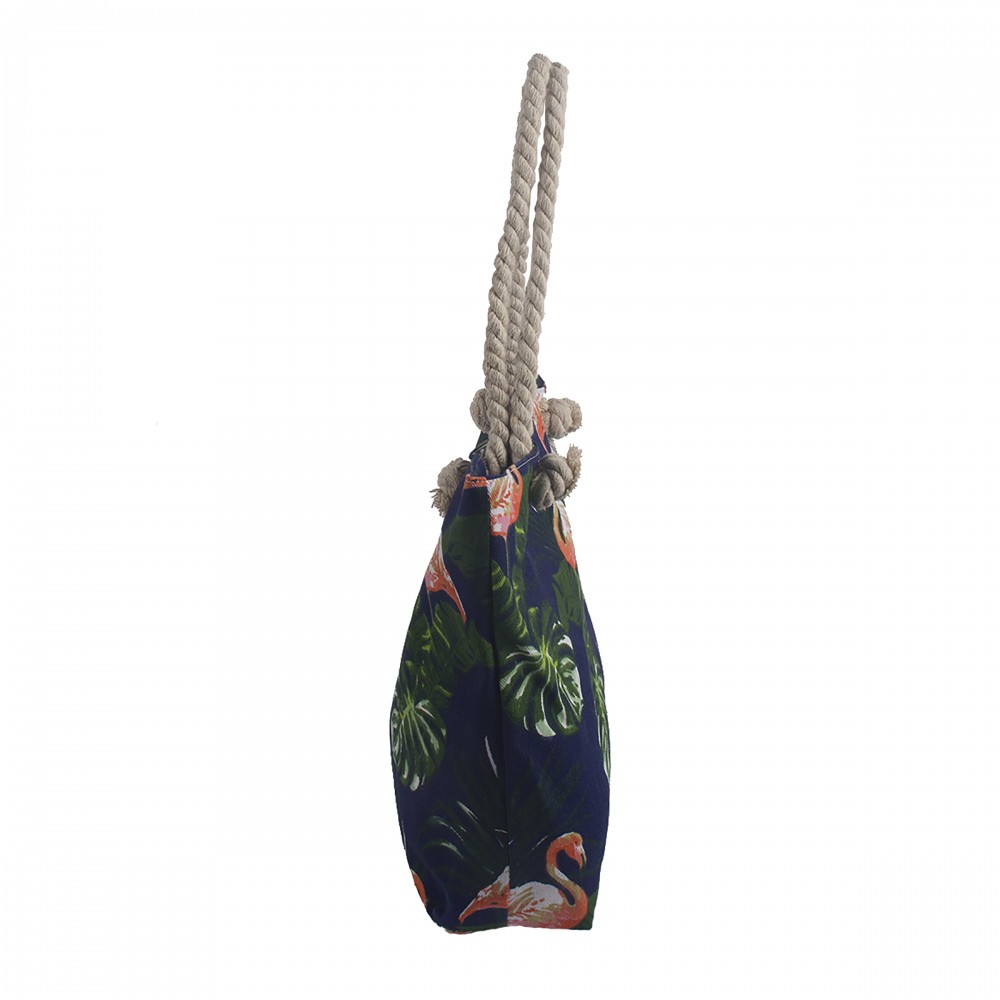 High quality canvas with hemp rope handle outside. Inside is smooth polyester with one small open pouch on the side, closure with zipper make your stuff safe. Full color outside imprint can meet your any requirements. 18"w x 14.5"h